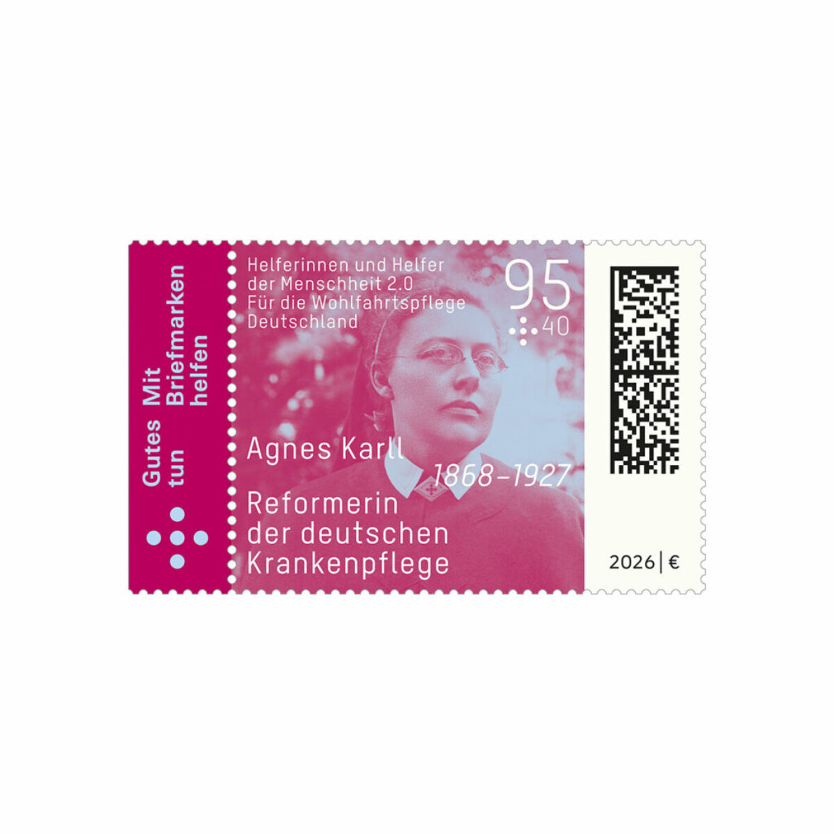 Wohlfahrtsmarken 2026: Zehnerbogen Agnes Karll (10 x 95 Cent + 40 Cent)